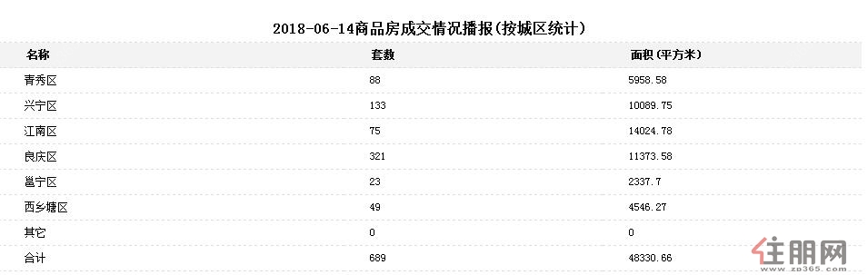 (6月14日南宁市各区商品房成交情况)
