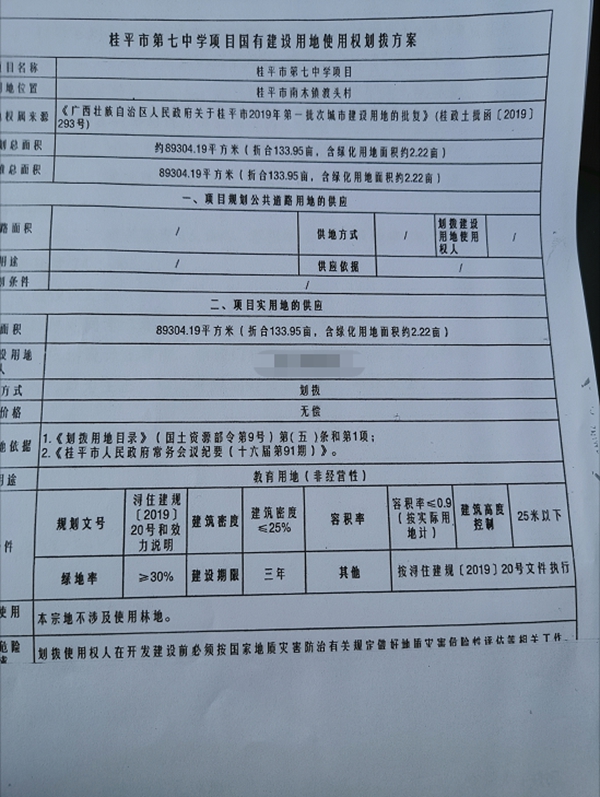 桂平第七中学**60个教学班,在校生3000人,学校将建设五栋教学楼、一栋办公综合楼、两栋教职工宿舍楼、两栋学生宿舍楼、一栋食堂,风雨操场、体育馆、环形跑道和看台,以及校门、运动场、校道等附属设施及供电供水设施,配套有实验室、仪器室、体育室、图书阅览室、音乐室、心理辅导室等功能室。
